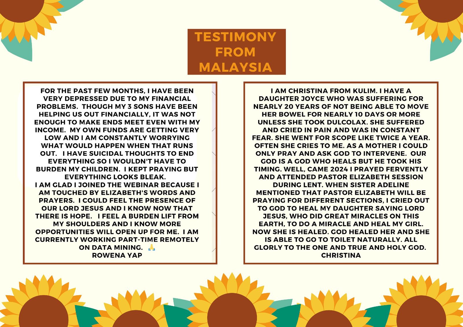 - TRANSLATORS – English, Bahasa Malaysia, Mandarin.